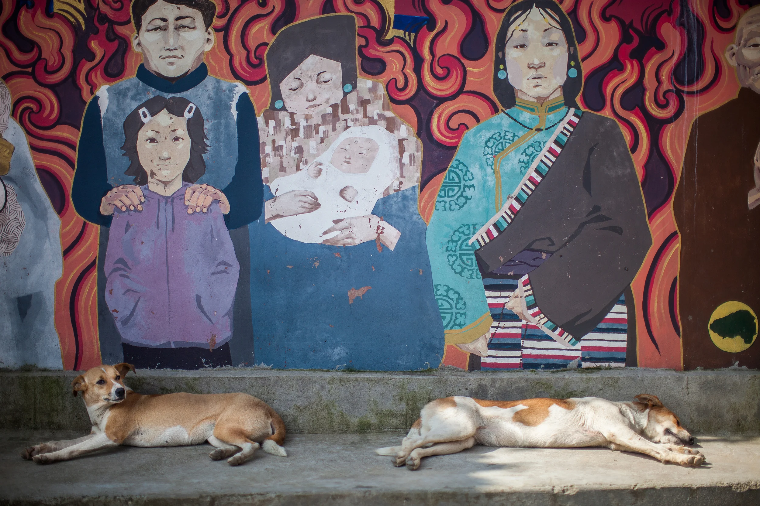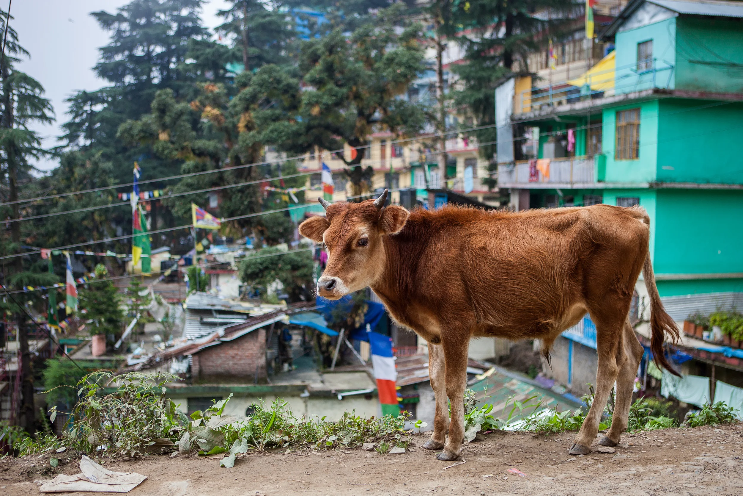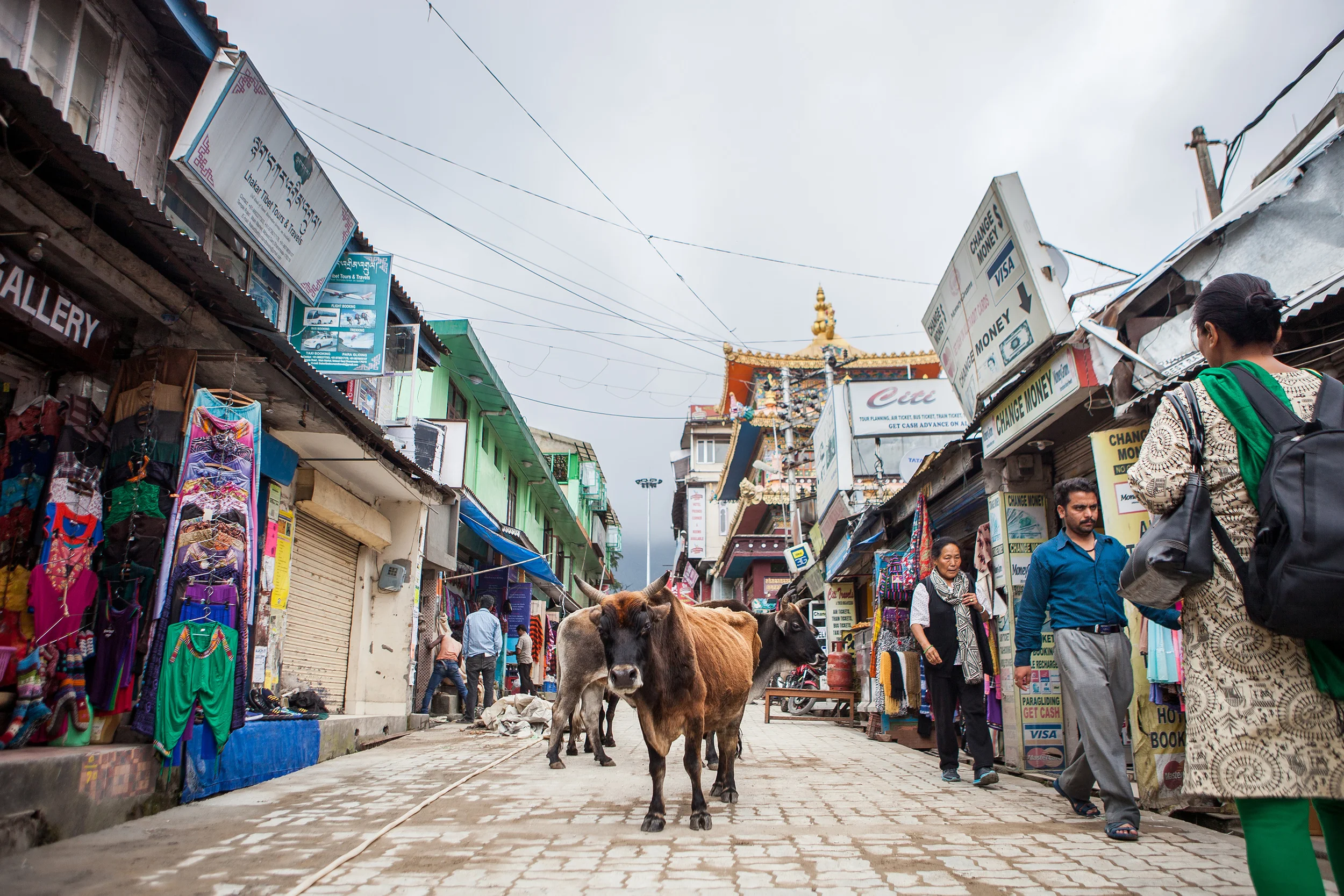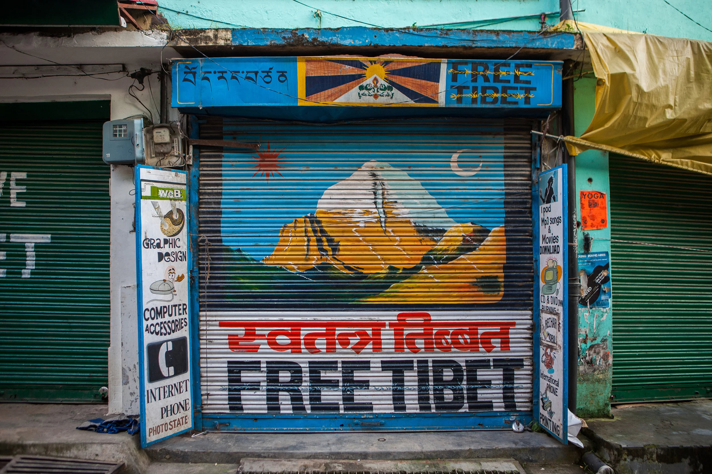 We'd been in McCleodganj, home to the exiled Tibetan government and the Dalai Lama in India, for a week at this point. We'd already grown to love its muddy streets tucked into the Himalayan foothills and the incongruous sight of red-robed monks with iconic white earbuds protruding from their ears or gathered around a computer screen in a small coffee shop. We loved the mix of Indian and Tibetan culture and the dreadlocked, backpacking travelers who came to pray or meditate or learn yoga or simply be in this fascinating (and extremely inexpensive!) place. We loved watching the stray dogs sleep against murals and get their heads patted by passing nuns or small morsels tossed to them by pink-cheeked shop owners. We even loved how there were constant intermittent power outages and how we could be in the middle of dinner at a restaurant, the power would go out, and someone would simply go around and light the candles on the tables while no one, diner or server alike, blinked for even a moment.