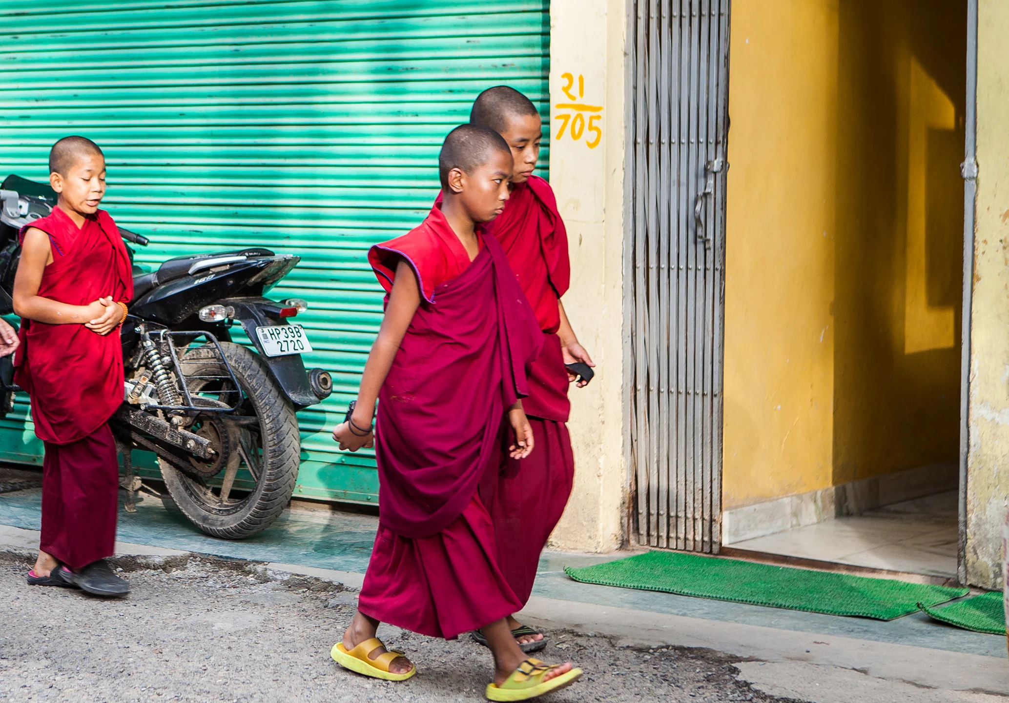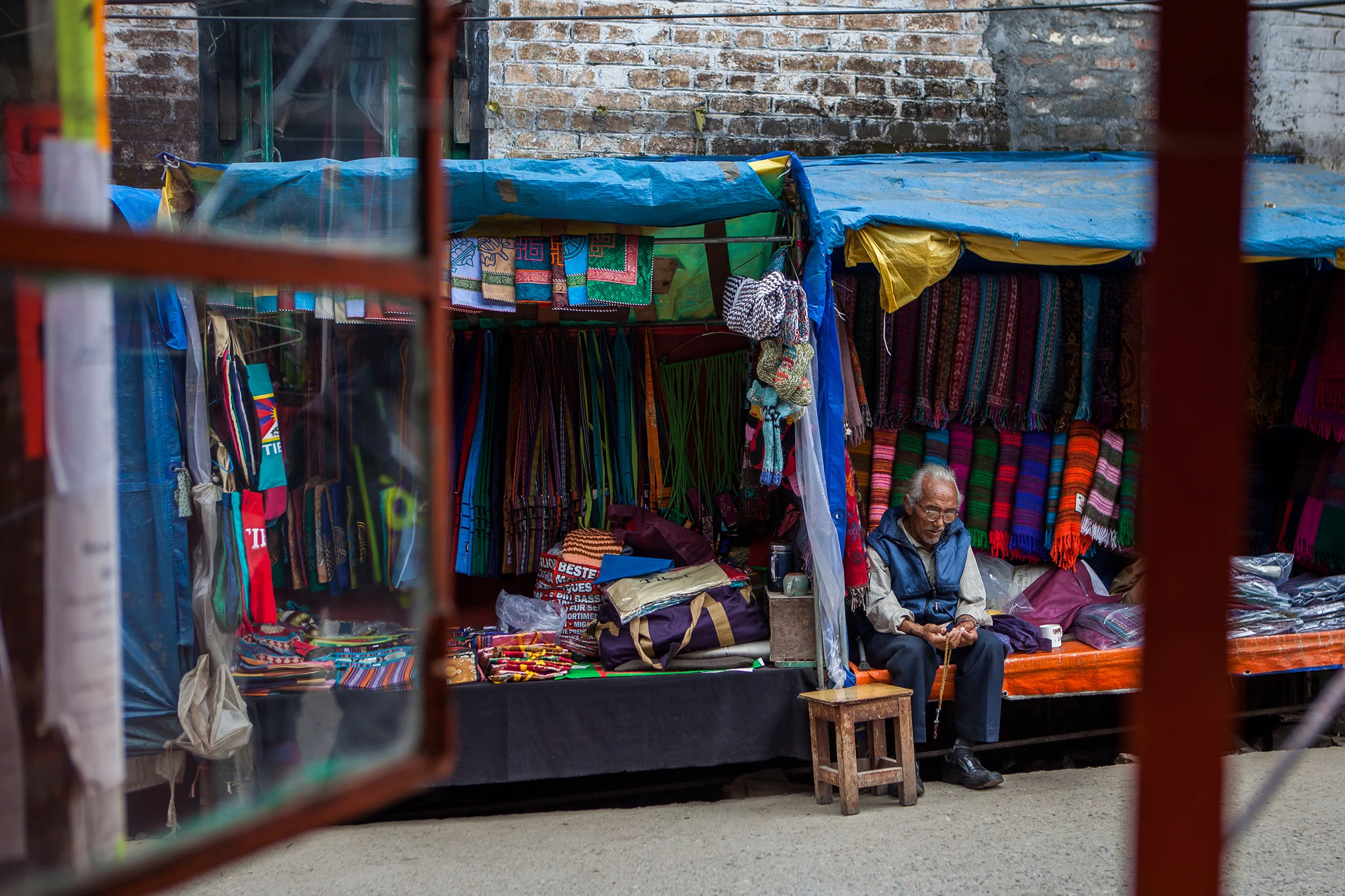 The 25x45 square foot courtyard was lined with low-slung plaster and concrete buildings designed in the way of government buildings everywhere, drab, just a little dowdy, and smacking of red tape and delay. When we arrived in the courtyard, spare passport photos and ten rupee notes in hand, there were approximately 15 people already there waiting, pressed along the shady edges to avoid the warm midday sun. Each offered a brief acknowledgement with a smile and nod as we took a place against a wall, knowing that we had another hour before the office issuing passes to foreigners for tomorrow's teaching with the Dalai Lama would open.
